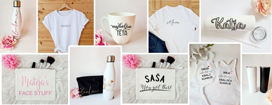 - personalizacija izdelkov (majice, predpasniki, skodelice, vreče, obeski, termo steklenice,....)