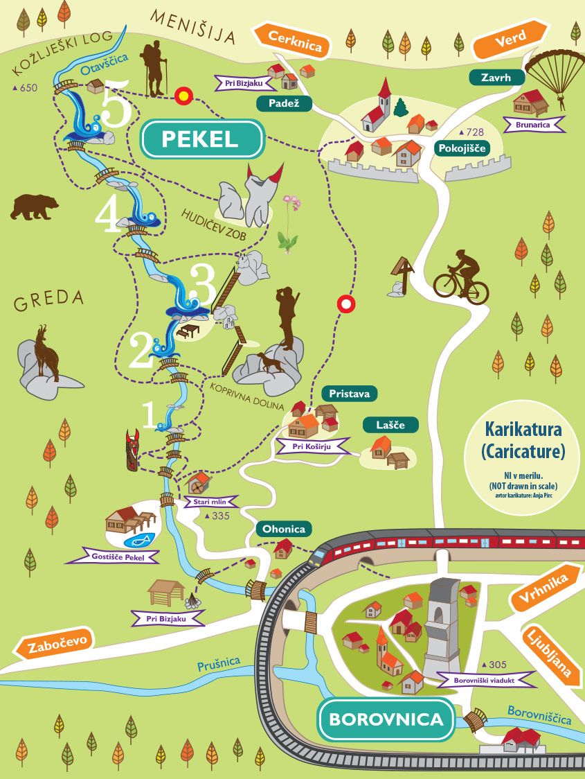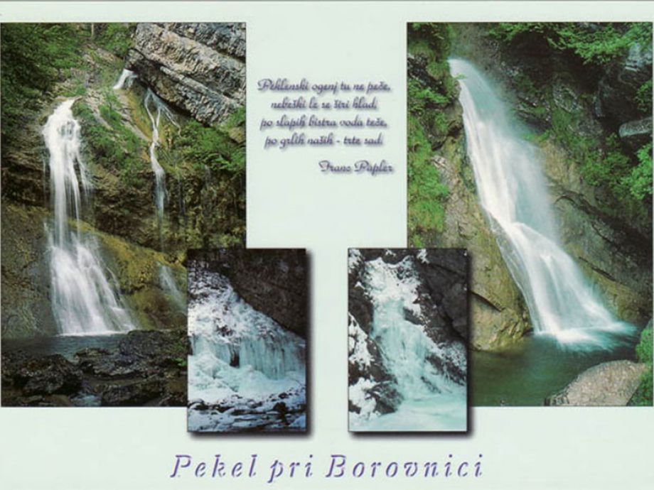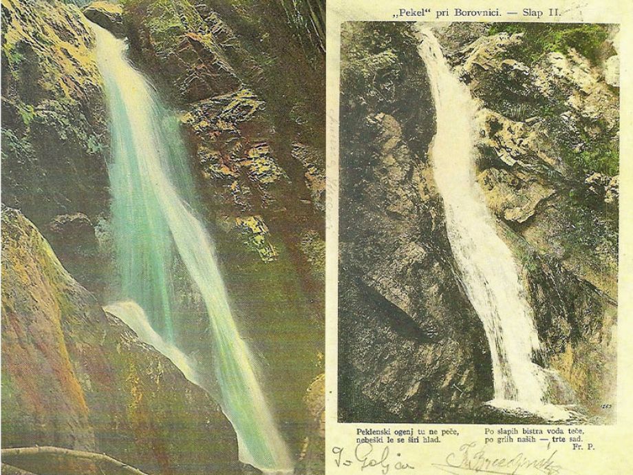 Ta slikoviti verz je v ranih letih 20. stoletja zapisal borovniški nadučitelj Franc Papler (1842-1911). Iz vrstic, ki smo jih Borovničani hitro posvojili, veje svežina in hlad soteske, ki ju popotnik začuti kmalu po vstopu vanjo. Temačni in skrivnostni strugi potoka Otavščice, ki se z bloško-rakitniške planote na jugozahodu borovniške doline spušča v ravnice Ljubljanskega barja in ob tem dobi ime Borovniščica, so naši slavni predniki nadeli ime »Pekel«.
