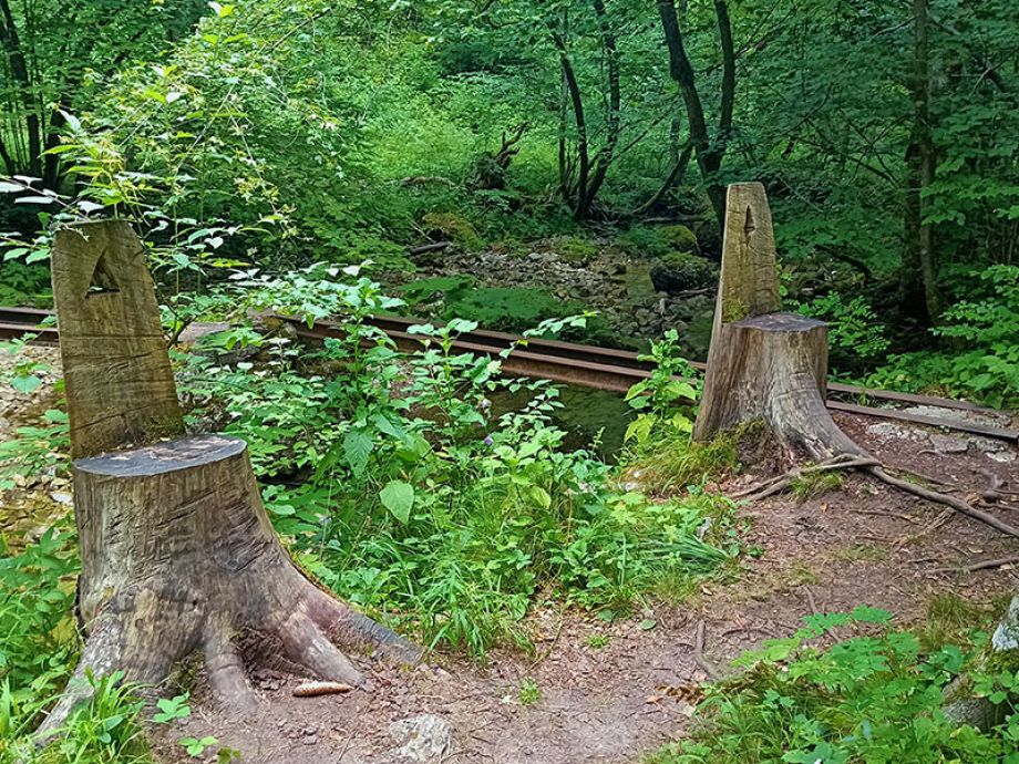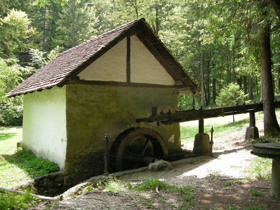Nad slapom (610 m) lahko opazimo ostanke samodelujoče hidravlične črpalke (t. i. oven), s katero so poskušali črpati vodo za oskrbo višje ležečih vasi (Pokojišče, Padež, Zavrh), kamnit jez in za njim ostanke nekdanjih mlinov (Pokojiško-Padeški, Zavrhovski) in žag (Colnarjeva). Nad slapom še zadnjič prečkamo strugo na desni breg in se mimo ruševin povzpnemo do makadamske ceste proti Pokojišču (tu se priključi tudi steza čez Hudičev zob).