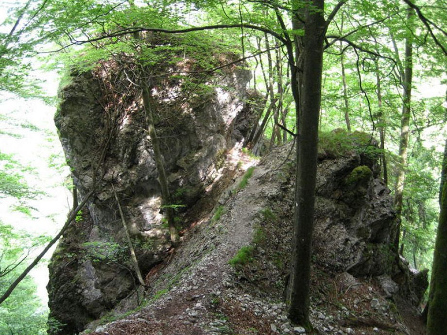 Nekaj deset metrov višje se steza razcepi na dvoje: prva gre čez Hudičev zob, druga (zanimivejša, a na nekaterih delih bolj zahtevna) pa se nadaljuje ob strugi. Na vrhu soteske se stezi spet združita.