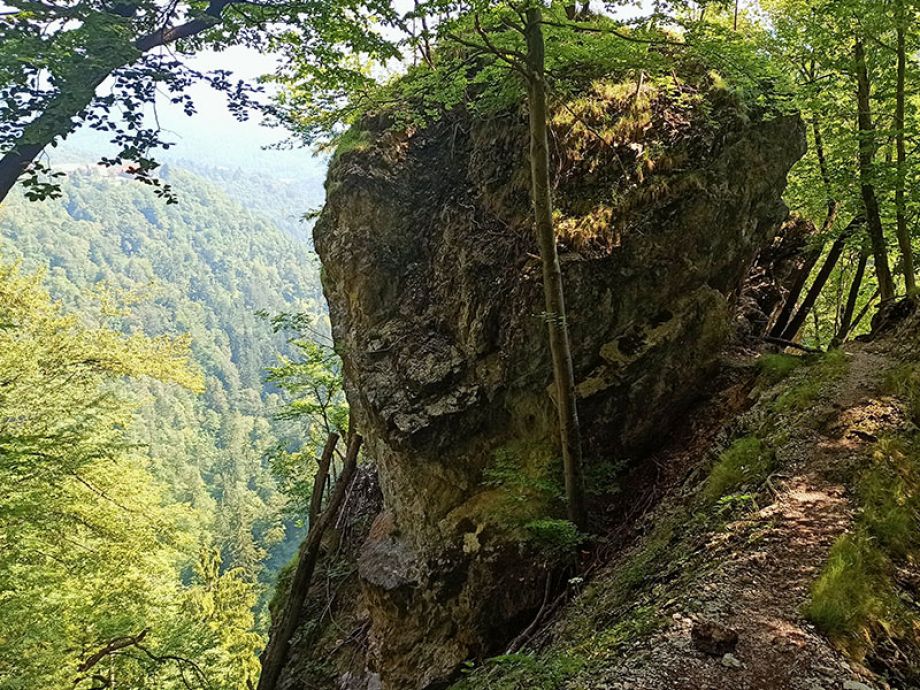 Po 0,5 km zavijemo desno na kolovoz (označeno s tablo in markacijami) ter po njem do razcepa (približno 1 km), kjer se lahko desno mimo skalne škrbine »Kozlovega gradu«, s čudovitim razgledom, in čez zaselek Pristava spet spustimo v pekelsko sotesko (steza se steče v dolino pri gostišču) (45 min) ali pa nadaljujemo levo proti Padežu in Pokojišču in se od tam spustimo v Borovnico (1 h 15 min). Od Pokojišča do Logatca je 3 ure, do Cerknice 2,5 ure in tu se deloma pešači tudi po Evropski peš poti E-7.